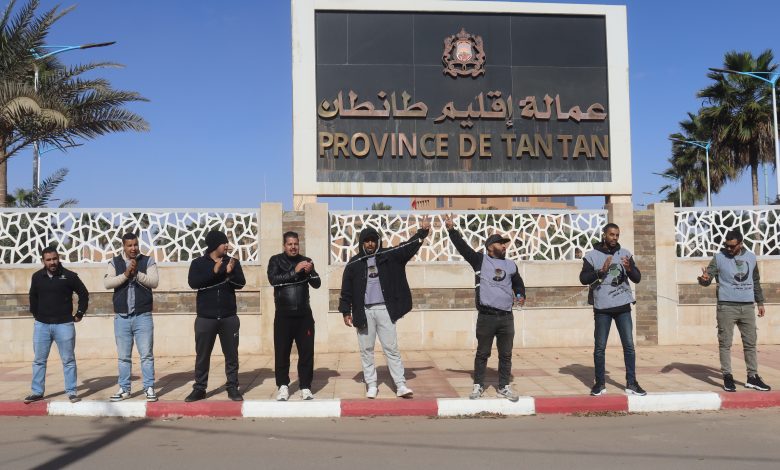 تنسيقية الميثاق للمعطلين الصحراويين تحتج بالسلاسل أمام عمالة طانطان وفضّ الاعتصام بتدخل أمني