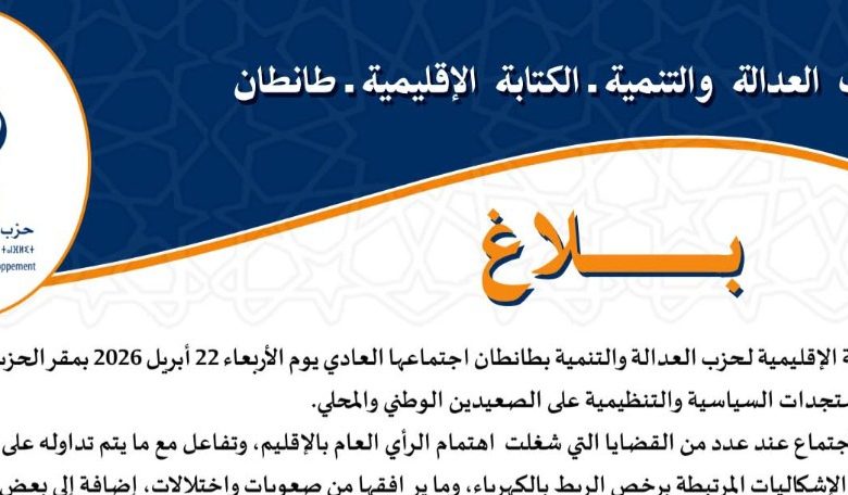 الكتابة الإقليمية لحزب العدالة والتنمية بطانطان تثير قضايا محلية ملحة وتدعو إلى تدخل عاجل